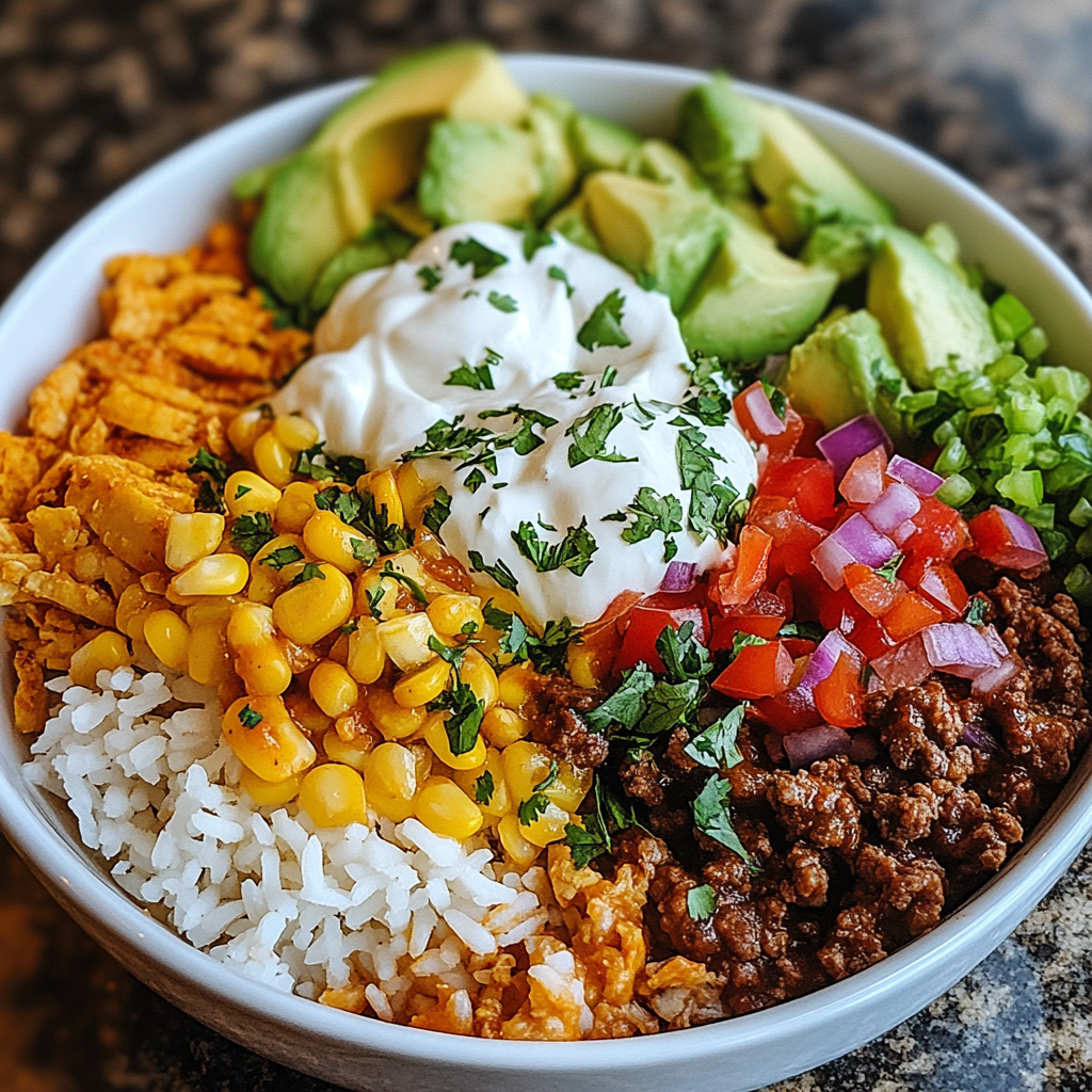 Experience a burst of flavors with this Taco Rice Bowl, where fluffy rice meets seasoned ground beef, zesty salsa, and creamy avocado. Perfect for busy weeknights or casual get-togethers, this dish is not just a meal but an opportunity to create unforgettable memories with loved ones. Easy to customize and ready in just 30 minutes, your taste buds will eagerly anticipate every bite!