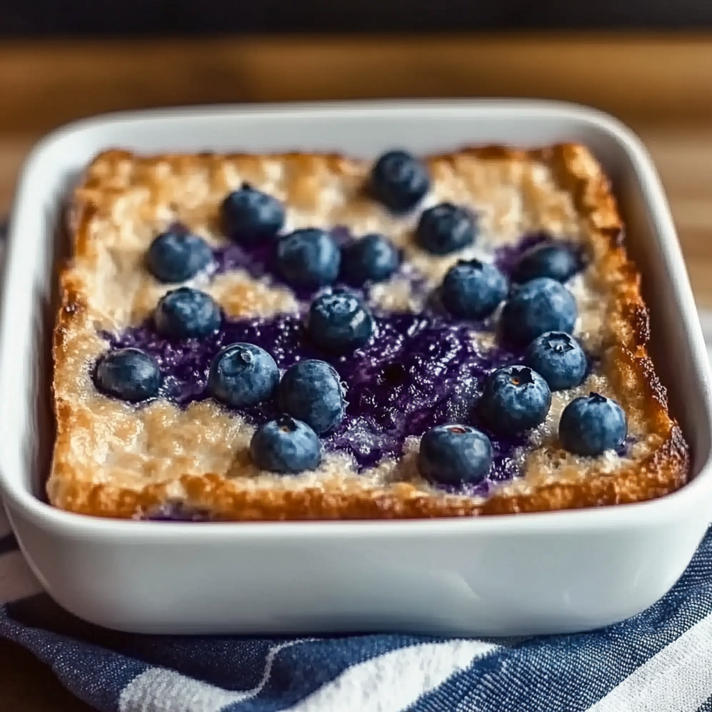 Pour the mixture into your prepared baking dish, spreading it evenly. Now’s your chance to get fancy: sprinkle some extra blueberries on top for visual appeal!