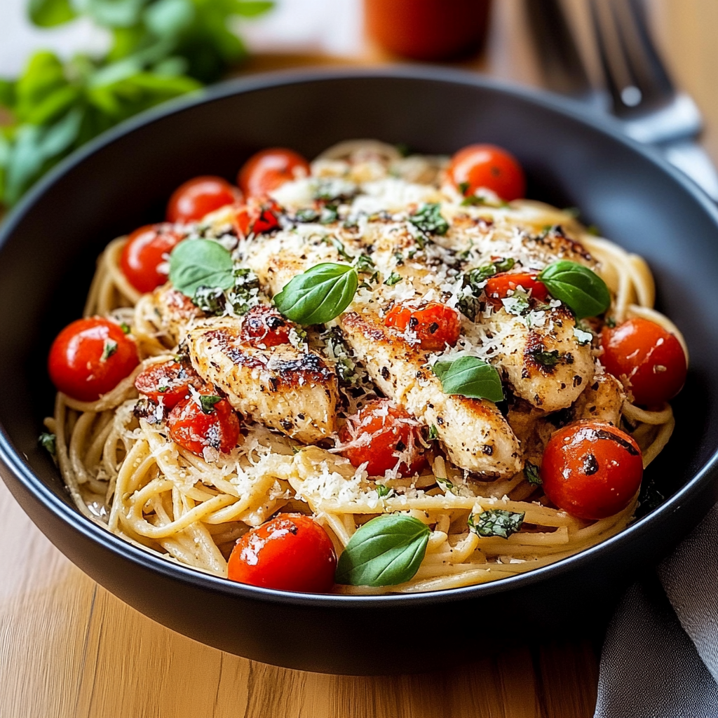 With each bite filled with juicy chicken, bright tomatoes, and fragrant basil over perfectly cooked pasta, you’ll be transported straight to Italy—no passport required! So gather around your dinner table and relish in what may become your new favorite recipe!