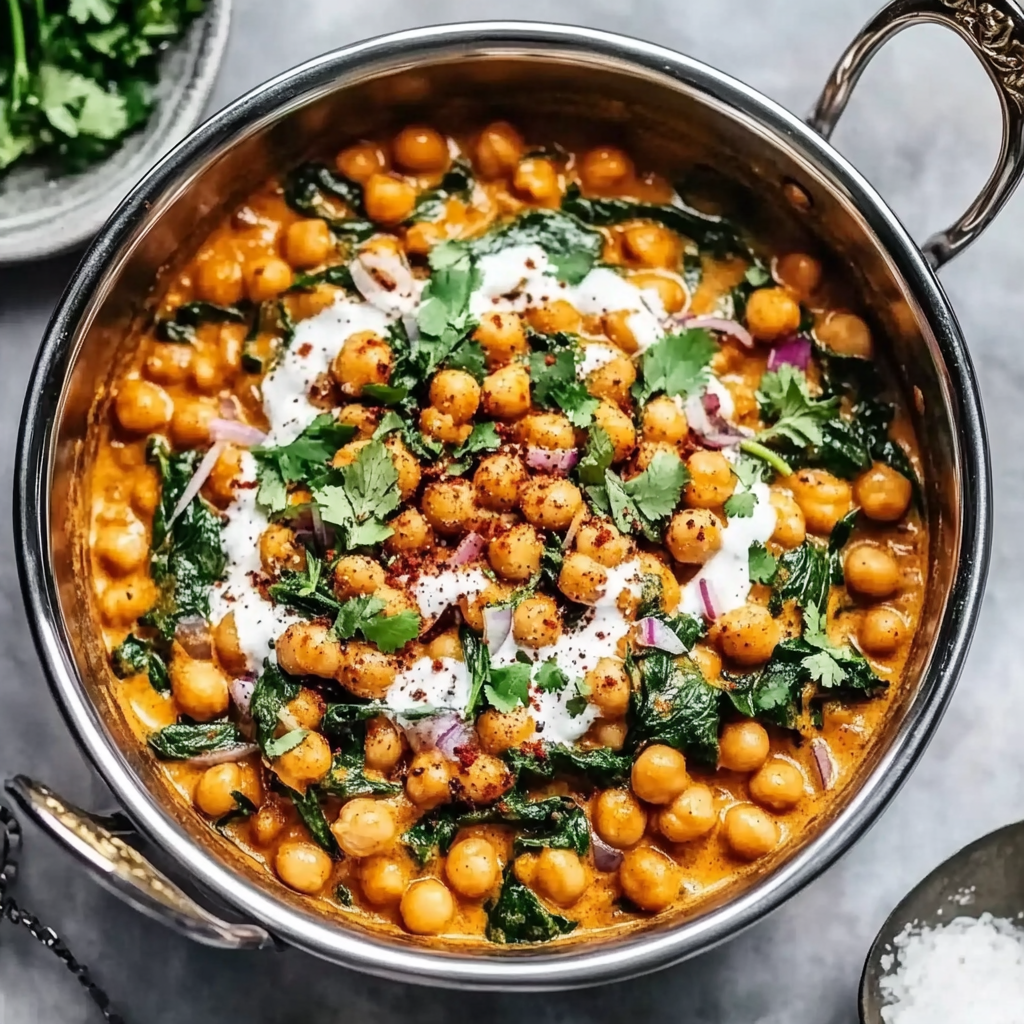 Indulge in the comforting flavors of Creamy Chickpea Spinach Masala, a delightful fusion of tender chickpeas and fresh spinach enveloped in a rich coconut milk sauce. This easy-to-make, plant-based dish is perfect for weeknight dinners or special gatherings. With warm spices and a creamy texture, each bite promises to transport you to culinary bliss. Serve it over rice or with naan for a complete meal that’s sure to impress!