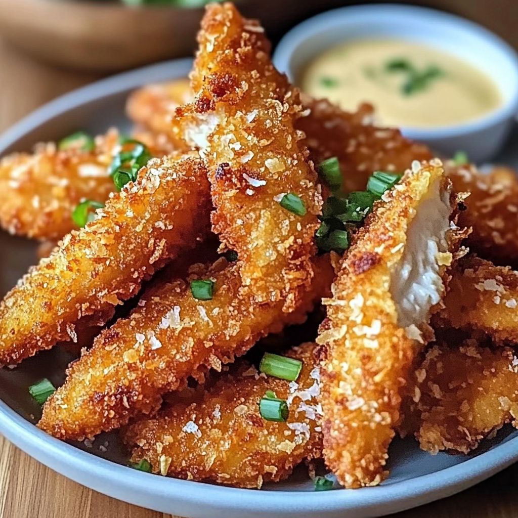 Crispy Coconut Chicken Strips pair excellently with various dipping sauces. You can try sweet chili sauce for a spicy-sweet kick, or honey mustard for a tangy flavor. A creamy avocado dip or a zesty lime cilantro sauce also complements the coconut’s richness beautifully. Choose your favorite to enhance your meal experience!