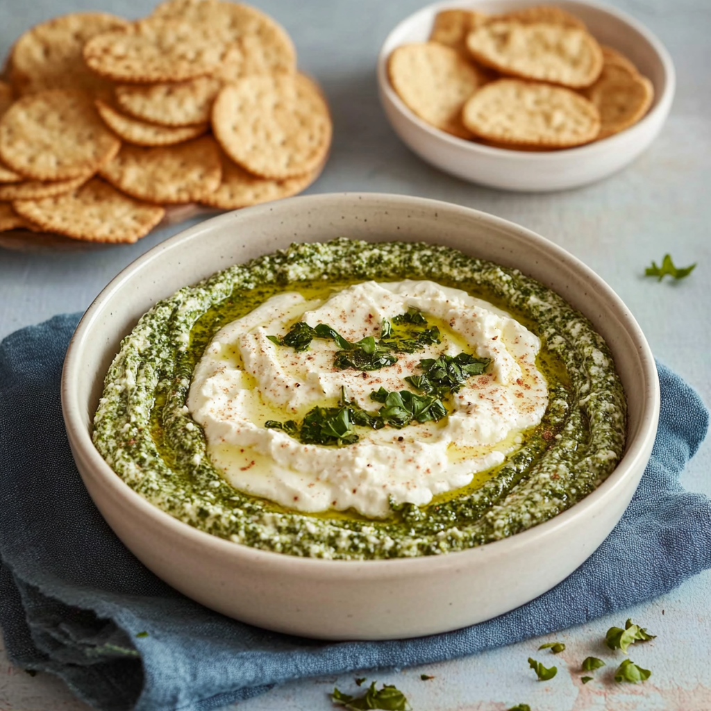 Easy Pesto Feta Dip with Crackers