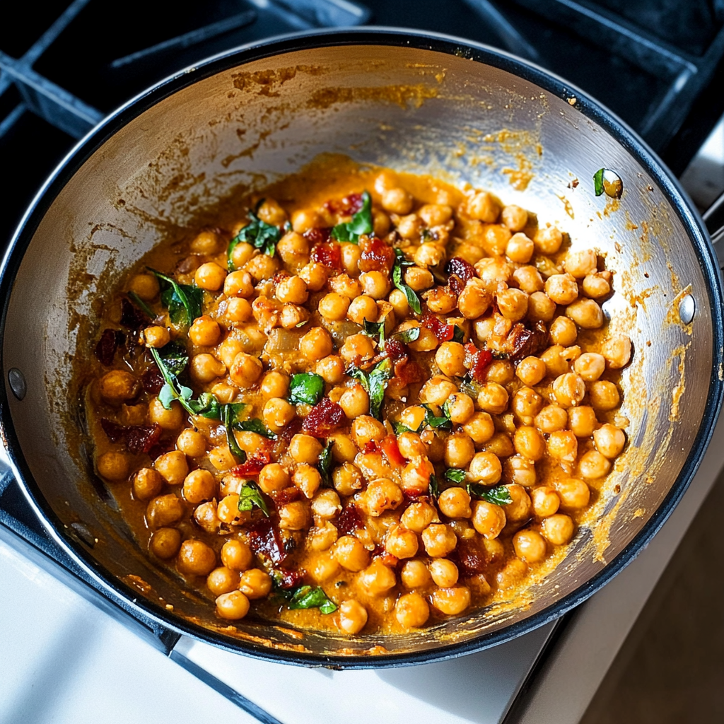 Incorporate Spinach: Once the chickpeas are ready, fold in fresh spinach until just wilted—a beautiful green burst!