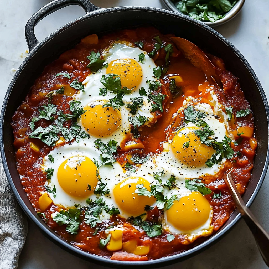 Create Egg Nests: With a spoon, make little wells in the sauce for your eggs to cozy up in. Crack each egg gently into its nest while channeling your inner egg whisperer—no one wants shell surprises here!