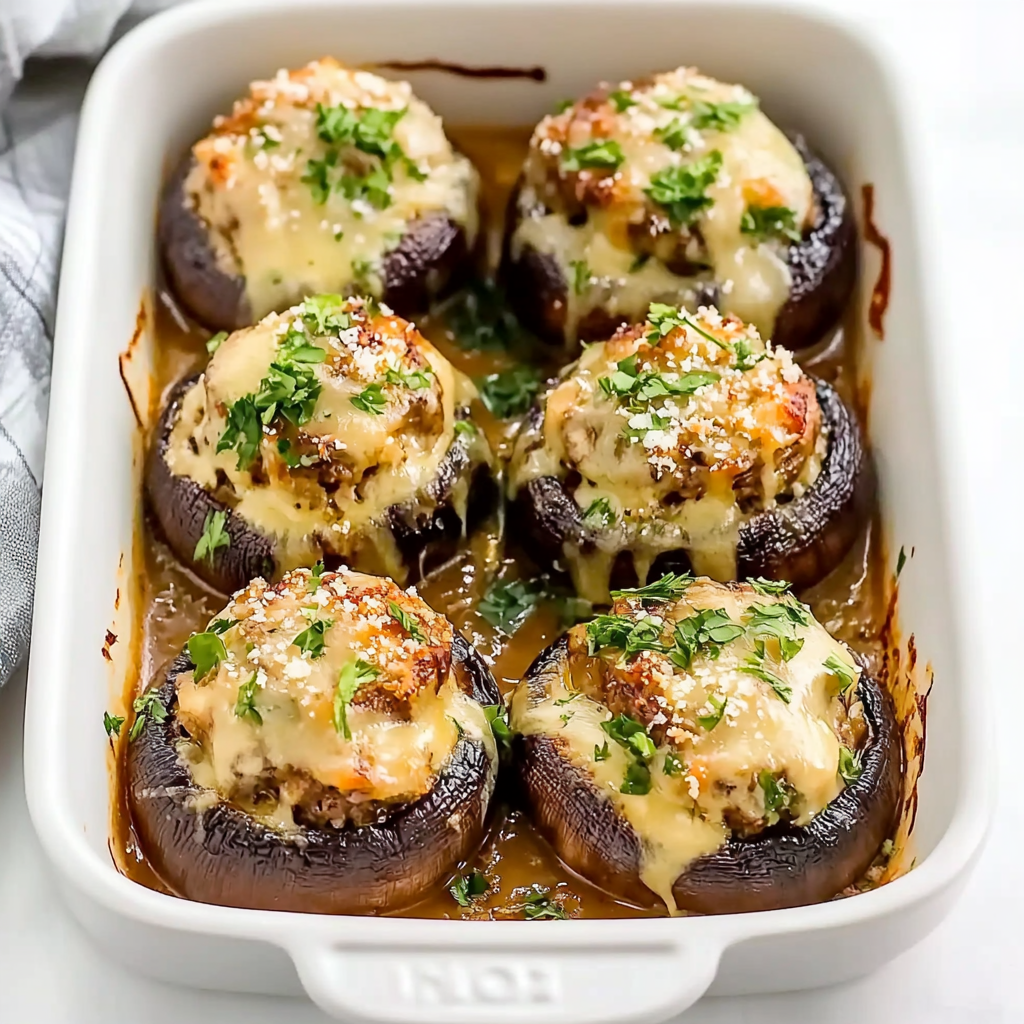 Now, let me take you back to a family gathering where these stuffed delights stole the show. Grandma was in the kitchen, her laughter mixing with the sizzling sounds of melted cheese. These mushrooms weren’t just food; they were a ticket to joy and togetherness, perfect for any occasion, whether it’s a cozy night in or a festive holiday feast.