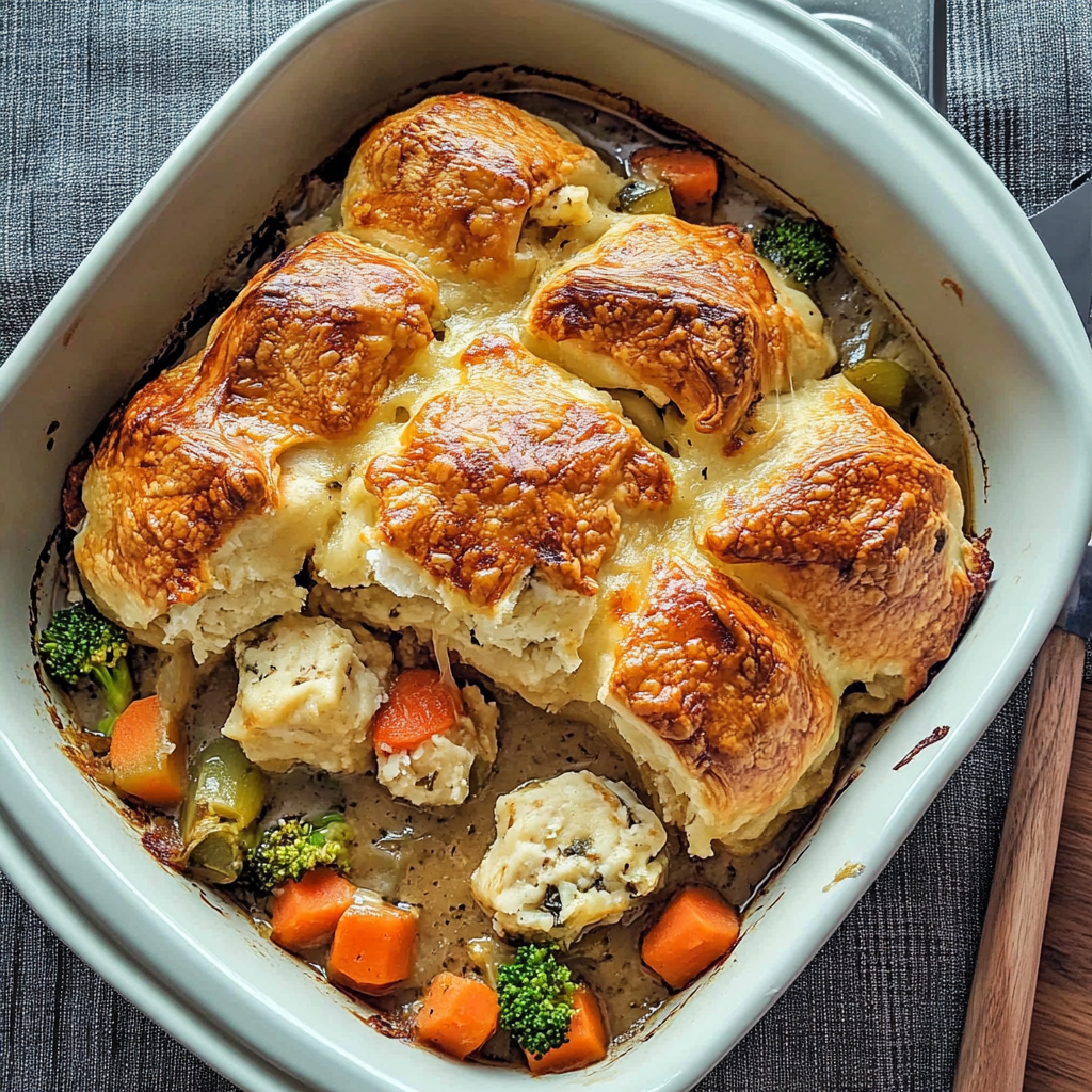 Prepare the Crust: Roll out your puff pastry or pie crust on a floured surface to fit your baking dish. You want it slightly larger than the dish so it drapes over perfectly once assembled.