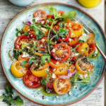 Heirloom Tomato Salad is a vibrant and refreshing dish that captures the essence of summer. Bursting with flavor from ripe heirloom tomatoes, fragrant basil, and a zesty balsamic vinaigrette, this salad is perfect for picnics or casual brunches. Its striking colors and delightful taste make it an impressive addition to any meal. Enjoy this culinary masterpiece that transforms simple ingredients into a memorable dining experience.